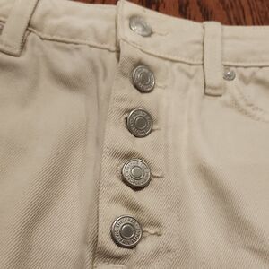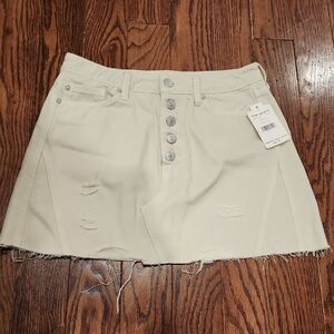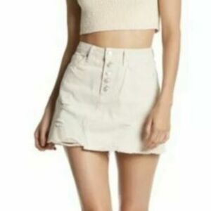 WE THE FREE Beige Mini Skirt Size 30 Denim Distressed Button Front
