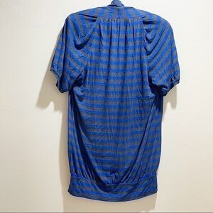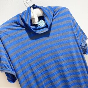 WE THE FREE Womens Mock Neck Blue Gray Striped Tunic Short Sleeve Boho Medium. New with tags.