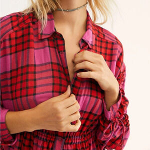 WE THE FREE NWOT Pacific Dawn Plaid Shirt in Red Combo