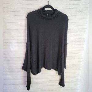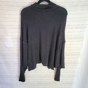 WE THE FREE OVERSIZE TURTLENECK RIBBED SLUB LONG SLEEVE TOP IN BLACK, SZ MEDIUM