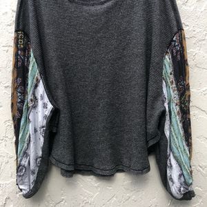 EUC. Fits like a Large thanks to the forgiving oversized silhouettes from FP!! Cute thermal top with contrast batik sleeves with exposed seams. Super versatile, can be dressed up or down. Looks great layered. Great top year-round.