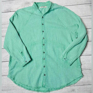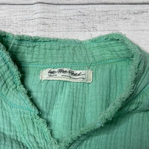 WE THE FREE People Daydream Raw Hem Brushed Cotton Button Down Blouse Clear Sky