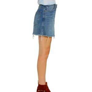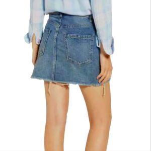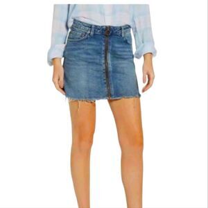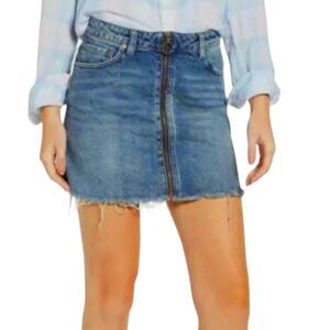 WE THE FREE People Zip It Up Zipper Denim Jean Mini SKIRT Blue Raw Hem 27 M