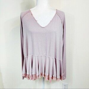 WE THE FREE Tangerine Lavender & Pink Distressed Ruffle Long Sleeve Tee - SMALL