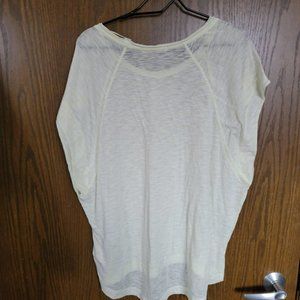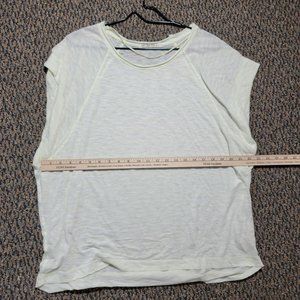 WE THE FREE Women's Lemon Lime Sheer Striped Short Sleeve Jewel Neck Top Size Large