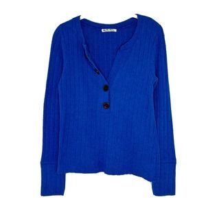 WE THE FREE Women's Long Sleeve Blue Henley Button Sweater Top Sz M