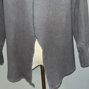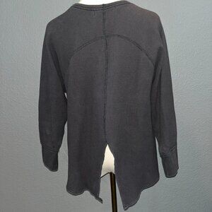 WE THE FREE Womens Long Sleeve Waffle Knit Henley Split Back Dark Gray EUC Small