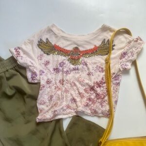 WE THE FREE/FREE PEOPLE DISTRESSED SEQUIN CROPPED T-SHIRT
