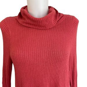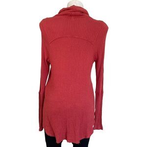 WE THE FREE Free People Waffle Knit Cowl Neck Top Size XS Rustic Orange