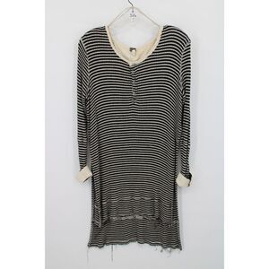 WE THE FREE PEOPLE DRIPPY HENLEY TOP IN BLACK/TEA STRIPES SIZE XS