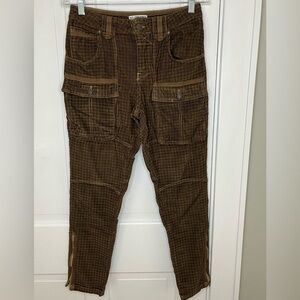 NWOT!! Free People Pants Corduroy London Calling lowrise Sandstone Brown Gingham Houndstooth