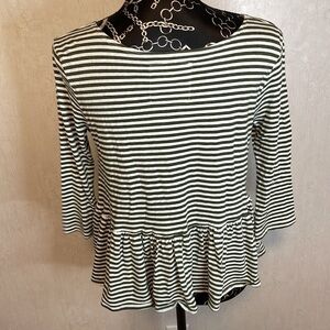 We The Free Green White Striped 3/4 Sleeve Baby Doll Size Small