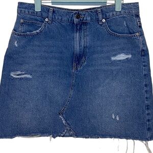 Free people denim skirt size 31 in excellent preowned condition. Distressing is appropriate on this item.