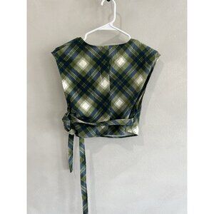 WE WORE WHAT Cropped Women's Plaid Green Wrap Tie Shirt V Neck Short Sleeve