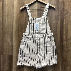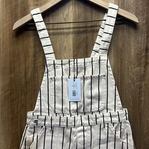 WE WORE WHAT - Slit Overall Short in Black & Antique White - Revolve