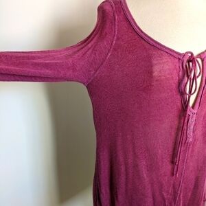 WE the Free Linen Blend Henley low V Neck with ties Oversized L Cranberry Plum
