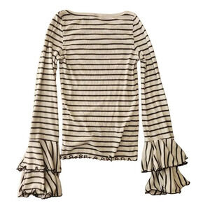WE the Free People size xs double bell sleeve Jersey Stretch white black striped