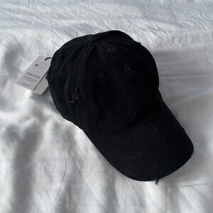 WE11DONE Black Distressed Logo Embroidered Cap Cotton Canvas Cap In Black Korea