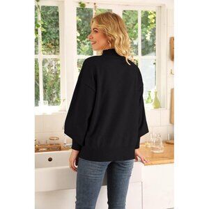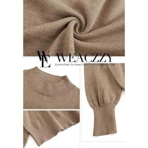 WEACZZY Casual Sweater Mock Neck Long Lantern Sleeve Lightweight Knit Pullover
