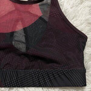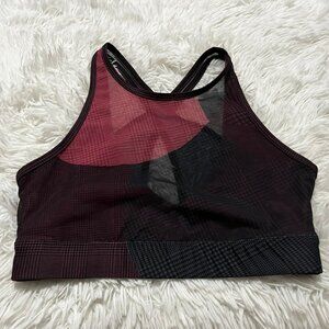WEAR IT TO HEART SPORTS BRA SMALL RED BLACK SHEER PLAID CUT OUT STRAPPY BRALETTE