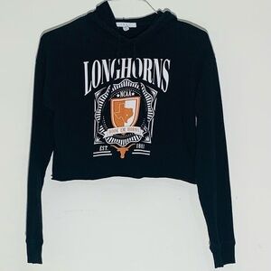 Stylish black crop top hoodie featuring a bold Longhorns logo. Perfect for casual wear or sports wear. Great condition. No flaws.