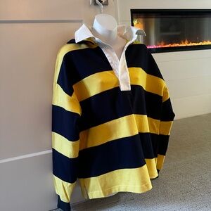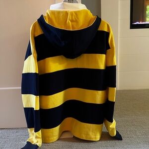 I meannnnn... how cool is this rugby top from sustainable high-end brand, WE-AR4 (sold at Neiman Marcus and Bergdorfs). Size medium and new with tags. I have 2 of these or I wouldn't even be selling this! The hood is actually removable and attached with buttons - super high quality garment... you will love it.
