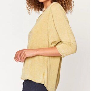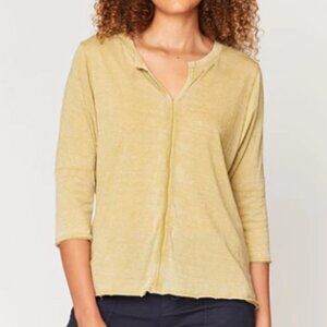 Sylvan Pigment Brown Split Neck 3/4 Dolman Sleeve Shirt Top by XCVI Wearables