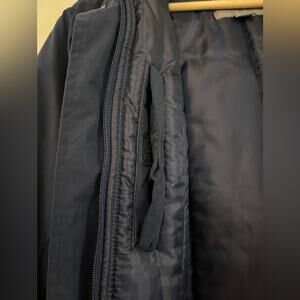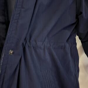 Condition is "Pre-owned". Beautiful powder blue jacket/coat. Weather stoppers by Totes. 100% polyestershell lining & filler. Drawstring waistband, hooded, 2 outer pockets, 4 inside pockets. Zip & snap closure. Hood is removeable. ( one button loop in back is torn but repairable) faux fur collar. Great looking warm jacket. No stains, tears or flaws.