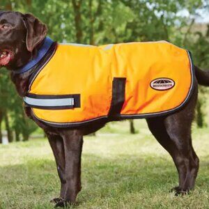 This is a gently used Weatherbeeta ComFiTec Reflective Parka Dog Coat in size 18 inch across back.