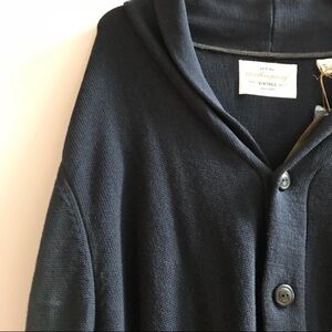 Big & Tall size 1XLT - Indigo navy blue shawl collar button down knit cardigan sweater with pockets.