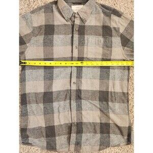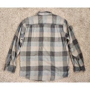 The WEATHERPROOF VINTAGE 1948 Brand Plaid Flannel Shirt in Men's size Large is a classic and timeless piece perfect for any casual wardrobe. Made from a comfortable cotton blend flannel, this button-up shirt features a collared neckline, long sleeves, and a regular fit for a comfortable and stylish look. The brown plaid pattern adds a touch of vintage flair, while the button accents and pockets add practicality to the design. Whether you're looking for a classic, vintage-inspired shirt or a versatile and durable one, this Weatherproof flannel shirt is sure to impress.