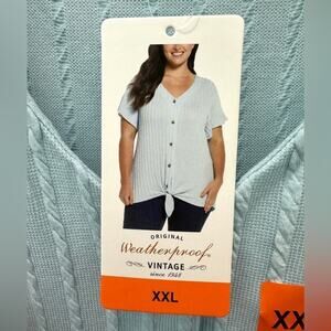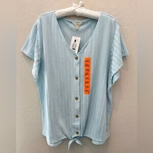 🆕 WEATHERPROOF VINTAGE | Plus Size Light Blue Button Down Front Tie Top | XXL