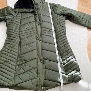 WEATHERPROOF Women's Modern Shaped Puffer Coat, Faux Fur, Olive, Size 1X
