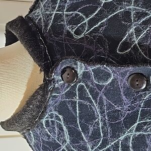 WEAVZ jacket, size small. Black with blue and lavender design. 60% wool