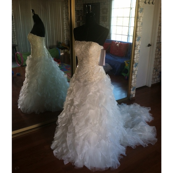 ❤️❤️❤️beautiful MONIQUE LOU wedding dress and I never got to wear it. Still have tags. Ivory dress with a beautiful train. 3rd picture is when it is bustled.
