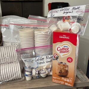 Set of Coffee Mate creamers and Gordon Food Service cups. Perfect for coffee lovers.