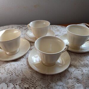 WEDGWOOD 8pc ETRURIA & BARLASTON Queens Shape 4Cups & 4Saucers made in ENGLAND