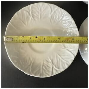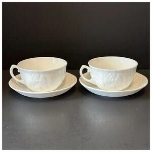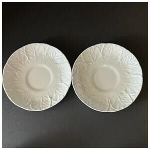 WEDGWOOD Countryware Flat Cup &Saucer Set of 2 All White Embossed Leaves No Trim
