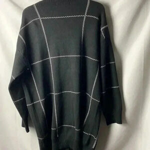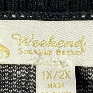 WEEKEND BY SUZANNE BETRO SIZE 1X/2X BLACK WHITE LONG BUTTON FRONT CARDIGAN
