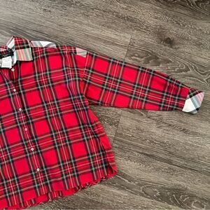 Tartan cotton oversized shirt featuring contrasting edges and patch pocket at chest.