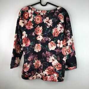 A lush floral print adds rich dimension to a casually styled top crafted from neoprene-inspired Italian stretch jersey.