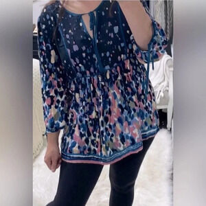 WEEKEND Suzanne Betro tunic balloon long sleeve ties at neck and wrists multi colored lightweight flowy