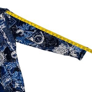 WEEKENDS By CHICO'S Zip Front Jacket Top Size 1 (M /8). Blue Travel Theme Print with Band Collar. Pockets. Good pre-owned condition.
