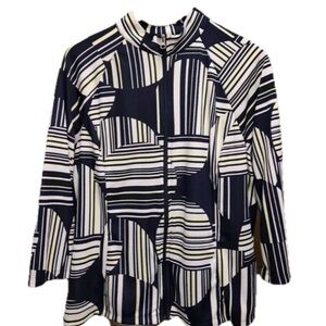 WEEKENDS By Chico’s Navy Linear Dot Striped Knit Wrinkle Free Zip Front Jacket M