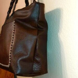 WEIMEIBAIGE Brown Vegan Leather Tote Bag Shoulder Purse Large