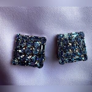 WEISS signed Vintage rare designer Weiss Square Light Blue Clip On Earrings
