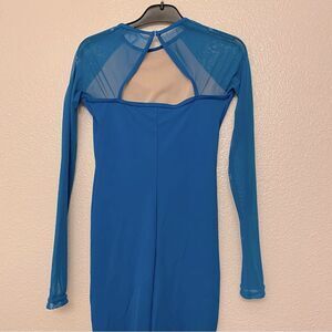 WEISSMAN Balera Dance Costume teal blue Long Sleeve Mesh Unitard MT11000 LC
