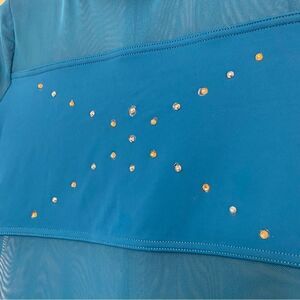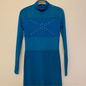 WEISSMAN Balera Dance Costume teal Culotte Unitard With Mesh MJ11187 Child LC