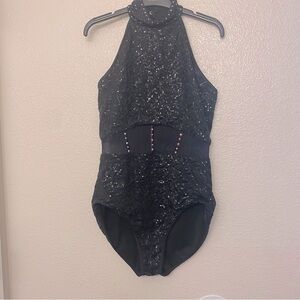 WEISSMAN Balera Dance costume black Sequin Caged Waist Leotard SQ13185 MA adult