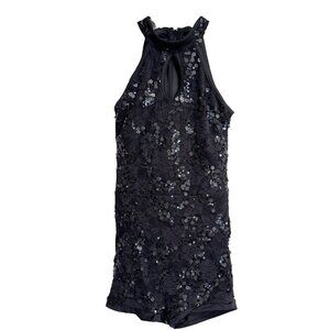 WEISSMAN Black Sequin Lace Dance Costume Sizes MC/LC Mock Neck Competition Jazz